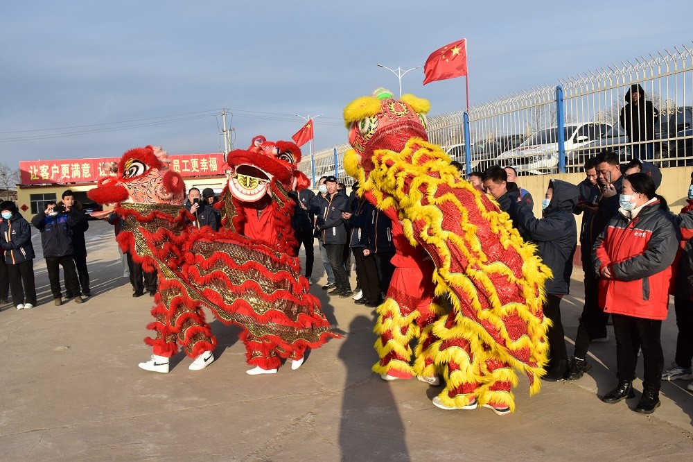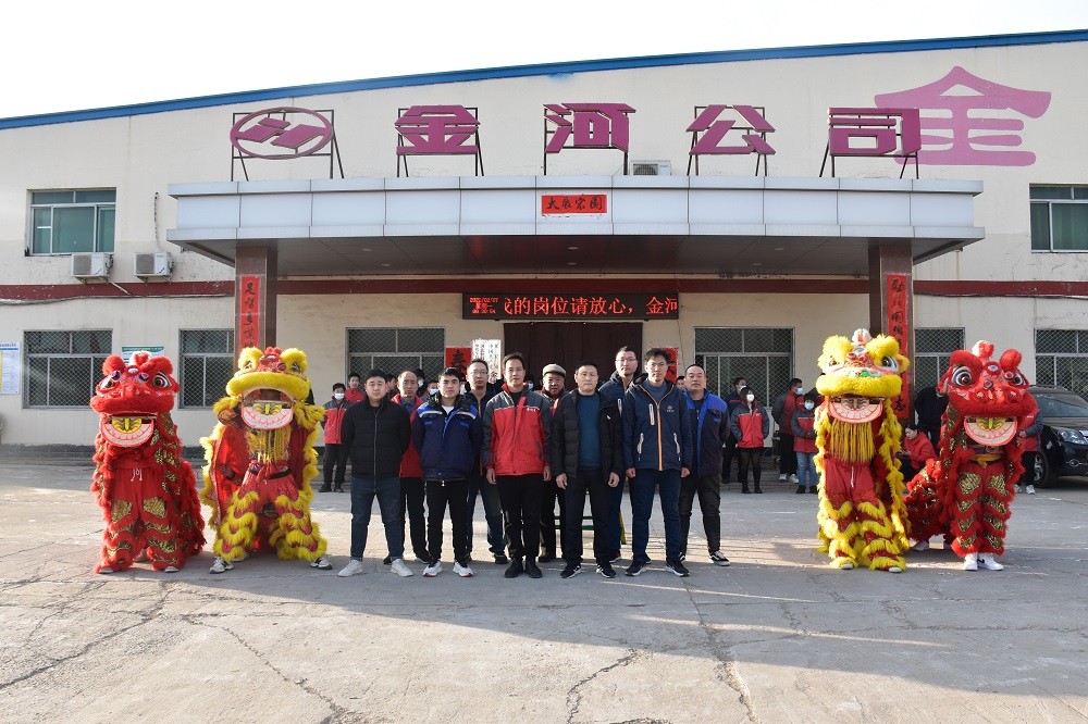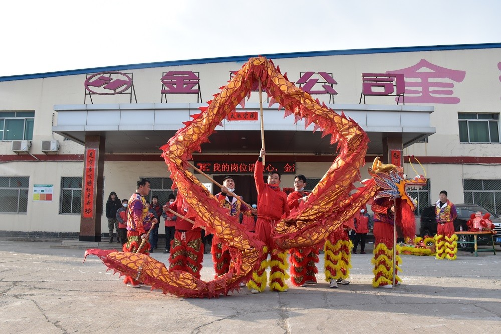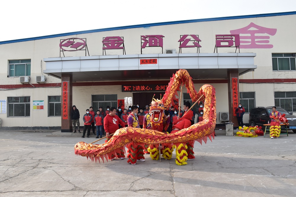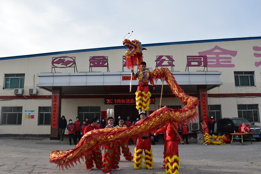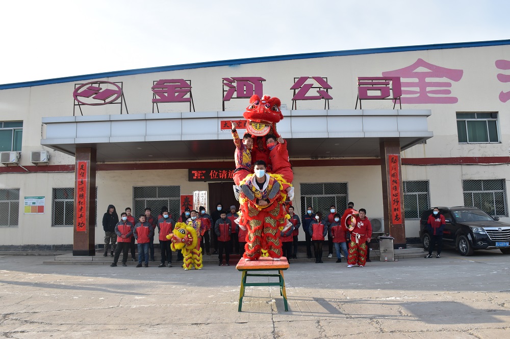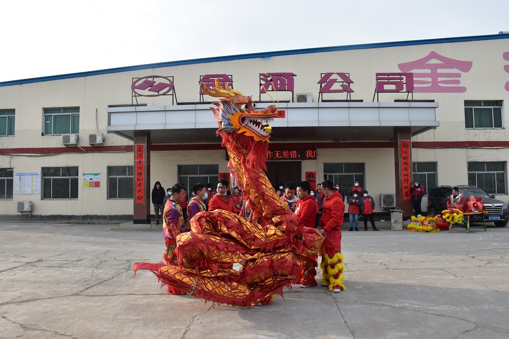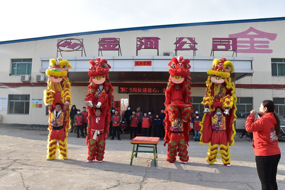2月7日(正月初七)上午8點09分,是金河公司開業(yè)大吉的好日子,公司依然選擇環(huán)保的開業(yè)慶祝方式:舞龍獅。多彩耀眼的四只龍獅活潑奔騰,在空中穿梭,激情四射;一條長龍變幻姿勢,時而蜿蜒盤起,時而赫然站立,時而威震四方,公司全體員工在精彩表演氣氛的帶動下,瘋狂吶喊,掌聲不斷,跳躍歡呼!威武的雄獅站立在四位高管身邊,加上雄獅口中吐出的吉祥對聯(lián)此乃大吉大利,財源廣進,虎年虎虎生威之意。祝愿金河公司在2022年大步跨越再戰(zhàn)新程,再接再勵再創(chuàng)偉業(yè)!