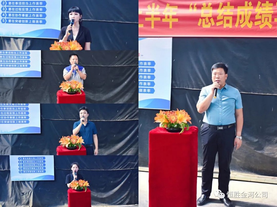 首先各部負責(zé)人對半年工作總結(jié)做述職報告,最后公司總經(jīng)理陳文通做總結(jié)性講話,負責(zé)人就不同角度從素質(zhì)、品質(zhì)、進度、環(huán)境講述半年來工作中取得成績,存在哪些不足及下半年工作部署進行發(fā)言,陳總就當(dāng)前經(jīng)濟形勢,市場分析及企業(yè)發(fā)展進行講話,就企業(yè)文化對現(xiàn)場員工進行問答,氣氛嚴肅又活躍。