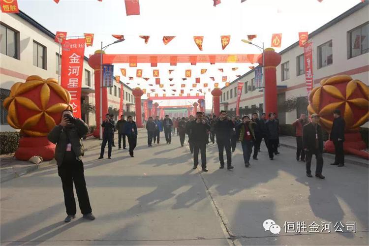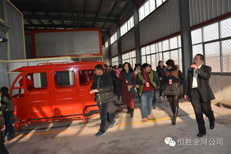 1月7日下午1點,恒勝金河工作人員陪同與會經(jīng)銷商乘坐48座八輛通宇大巴,進入公司參觀,一路上公安交警維持道路秩序,公司門口鑼鼓升天,樂隊齊奏歡迎曲,紅燈籠,彩旗高高掛起,金河公司滑翔機在上空猶如春晚小彩蝶自由旋轉(zhuǎn),美麗如畫,公司高管與政府領(lǐng)導(dǎo)陪同經(jīng)銷商先后參觀了車廂、車架、涂裝、污水處理站、電動、后橋、組裝、棚車、展廳等,每個展點都給經(jīng)銷商帶來非常震撼的感觀與驚喜!